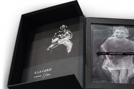 Special embossed hard cover box lined with black linen fabric & satin ribbon containing 80 individual cards.